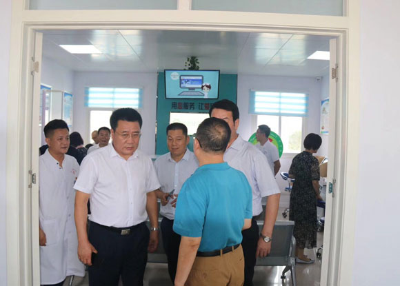 河南省市領導和汝南縣縣委書記等領導參觀指導赴駐馬店汝南縣三門閘醫院參觀考察國家公共衛生智能健康管理中心。