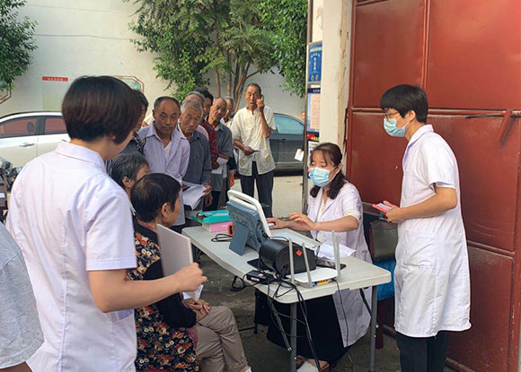 在體檢現場,老人們在工作人員的帶領和攙扶下,拍段依次進行體檢。醫務人員給老人抽血、做B超、心電圖、心肺聽診、測量血壓、血常規、尿常規等項目時,又細心又認真。對很多身體不適的老人關于身體的詢問狀況,他們耐心的解答,并根據具體情況開展健康宣教,最后的體檢結果將記錄在老人們的個人健康檔案上。