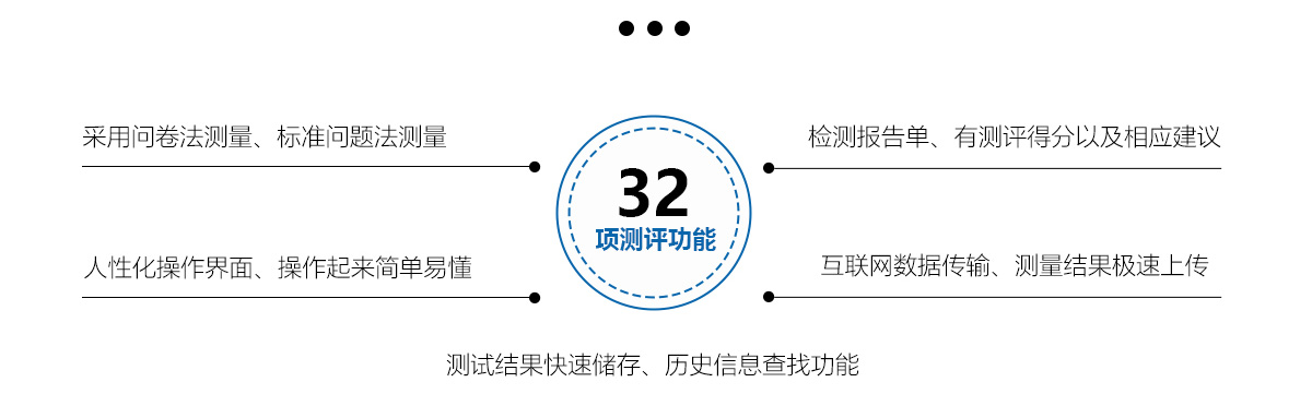 產品功能:感覺綜合能力測評、網絡成癮測試、克氏行為量表、兒童孤獨癥評定、康奈爾兒童多動癥、兒童氣質測評、學習障礙篩查表、